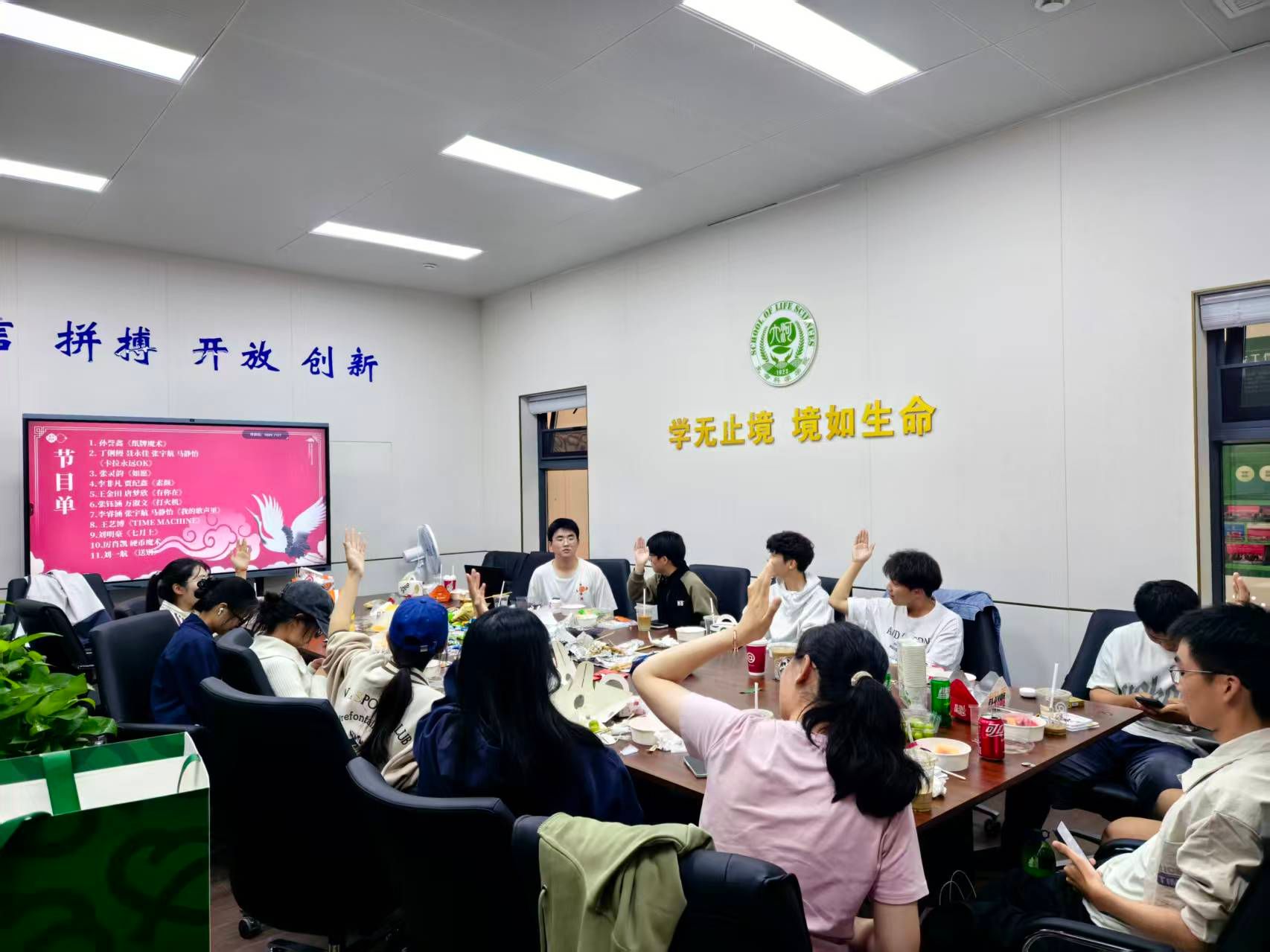 9月28日下午,betway88西汉姆网页生物科学“林伯襄”实验班全体学生欢聚一堂郑州校区科创东楼,举办“青春颂华诞,明月寄情深”主题茶话会,同学们以魔术、歌舞、合唱等丰富多彩的节目,共同庆祝中华人民共和国成立76周年,感受传统中秋佳节的温馨与团圆。