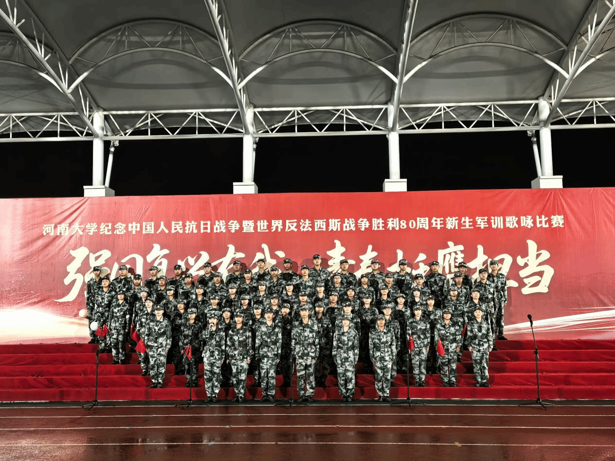 汇演现场,生科学子队列整齐、口号震天,以昂扬姿态走过主席台。他们刚健的步伐与精准的动作,凝结了二十一日艰苦训练的汗水,彰显出新时代青年的纪律性、凝聚力与勃发的青春风采。最终,2025级本科生在郑州龙子湖校区汇演中荣获三等奖。