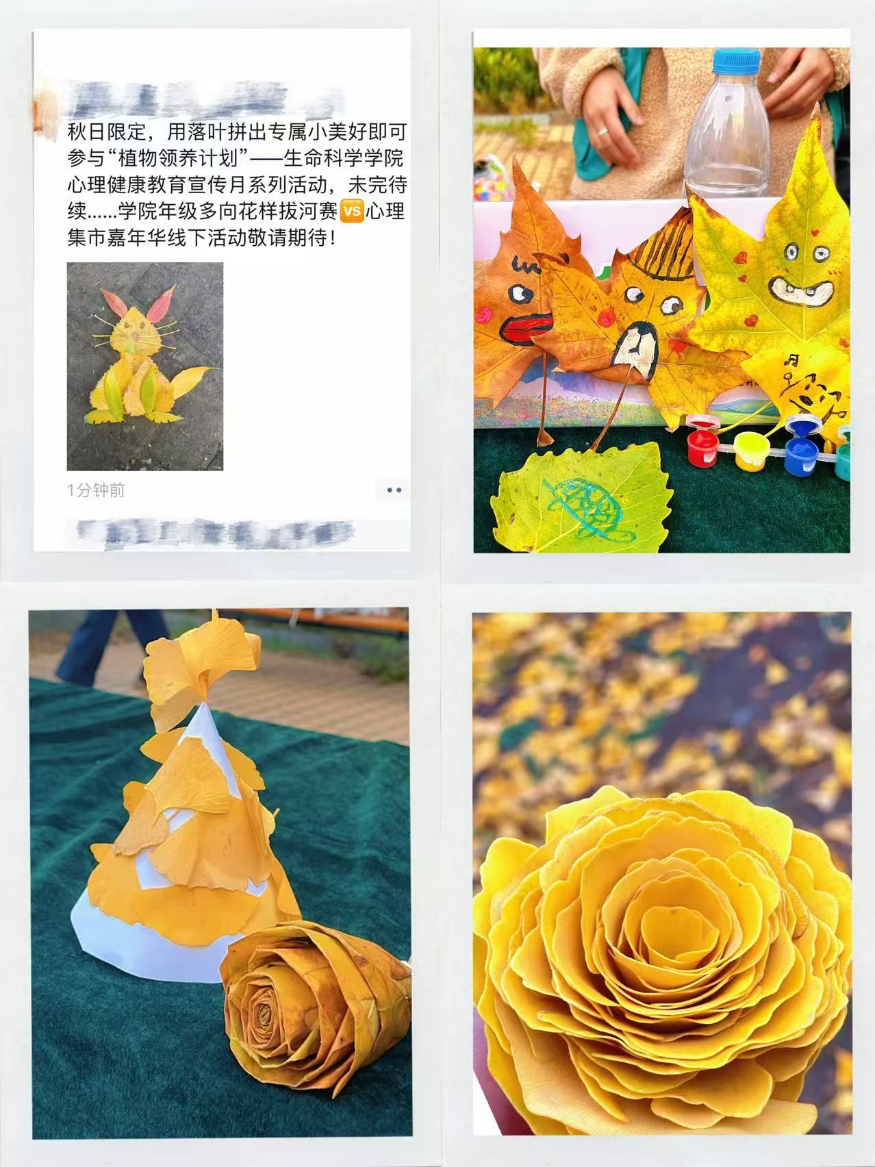 以德育心,润物无声。学院结合校园秋日景观和植物学专业特色,举办“以‘德’绘心,低头捡个秋”落叶创作主题活动。学生走进自然、收集落叶,开展创意实践,在发现和创造自然之美的过程中,涵养感知生活的细腻情感、珍惜万物的感恩情怀以及静心专注的平和心境。通过朋友圈互动、作品展示,温暖在同辈间传递、友谊在活动中凝结,实现了从个体心灵涵养到集体品格塑造的升华,为青年学子筑牢了崇德向善、坚韧笃行的精神根基。