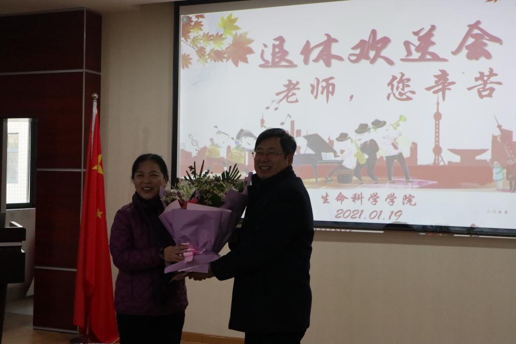 赵东保代表学院对光荣退休的张莉老师表示诚挚的感谢!对她为学院建设发展作出的重要贡献和取得的重要成绩给予了高度赞扬。他要求,一要真诚关怀离退休教职工的生活,二要开展丰富质优的精神文化活动,三要为离退休同志发挥余热搭建平台、提供保障、热情服务。他衷心祝福退休同志老有所养、老有所依、老有所为、老有所乐!祝愿退休同志安享晚年幸福生活!